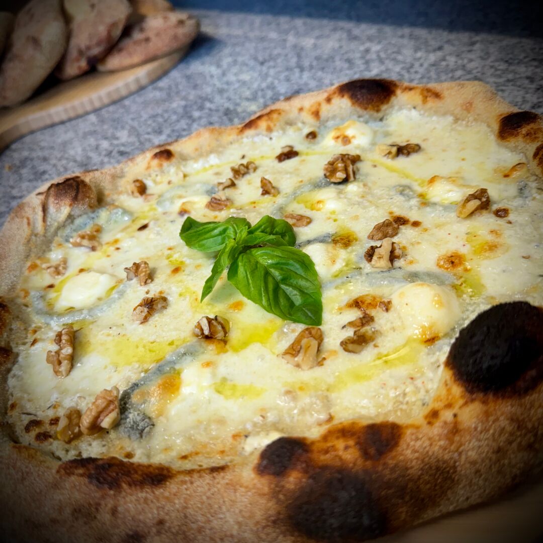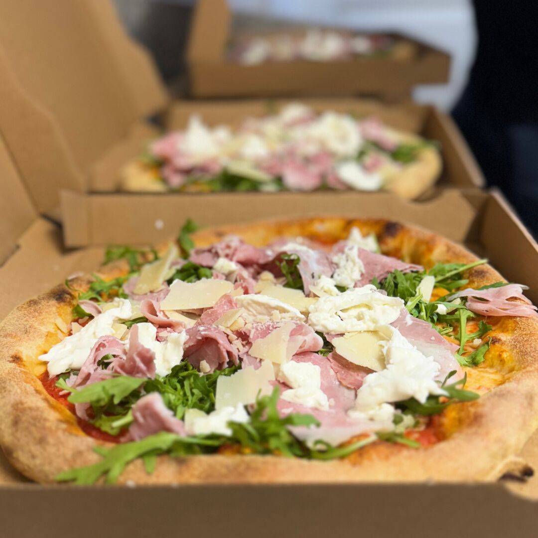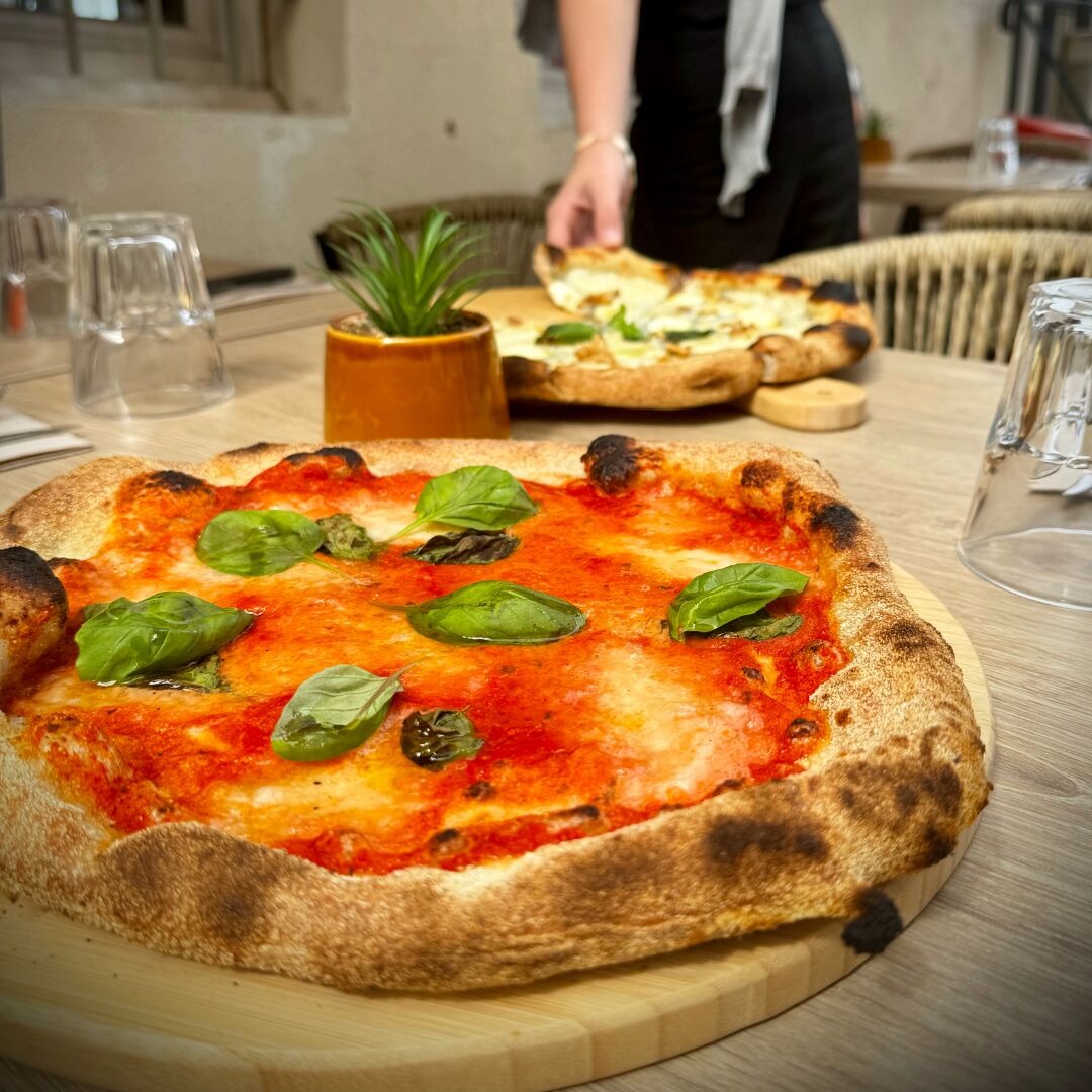 Nos pizzas sont faites maison, avec une pâte croustillante et moelleuse, élaborée à partir de farine de blés anciens bio et d’huile d’olive extra vierge, le tout garni de produits italiens de qualité.